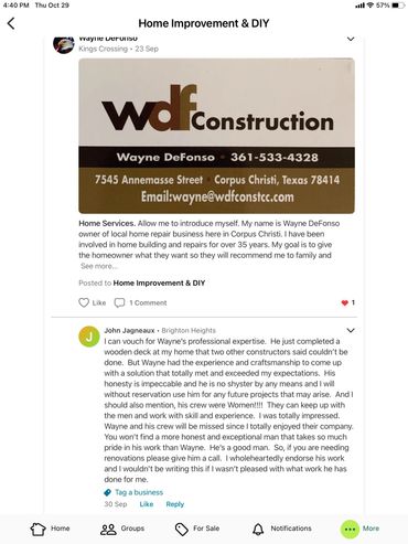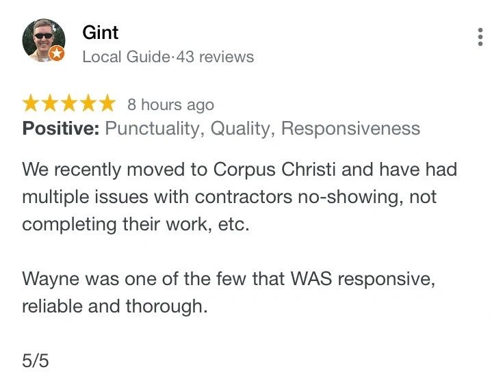 Hello Corpus and surrounding neighbors. MY name is Wayne. I own a local licensed Home Repair/Remodeling company here in Corpus Christi. I am also a BBB A+ accredited business. My wife and I moved to Corpus Christi back in 2004 from Los Angeles California where I was blessed to work for a company that remodeled and built homes for the people in the entertainment industry.